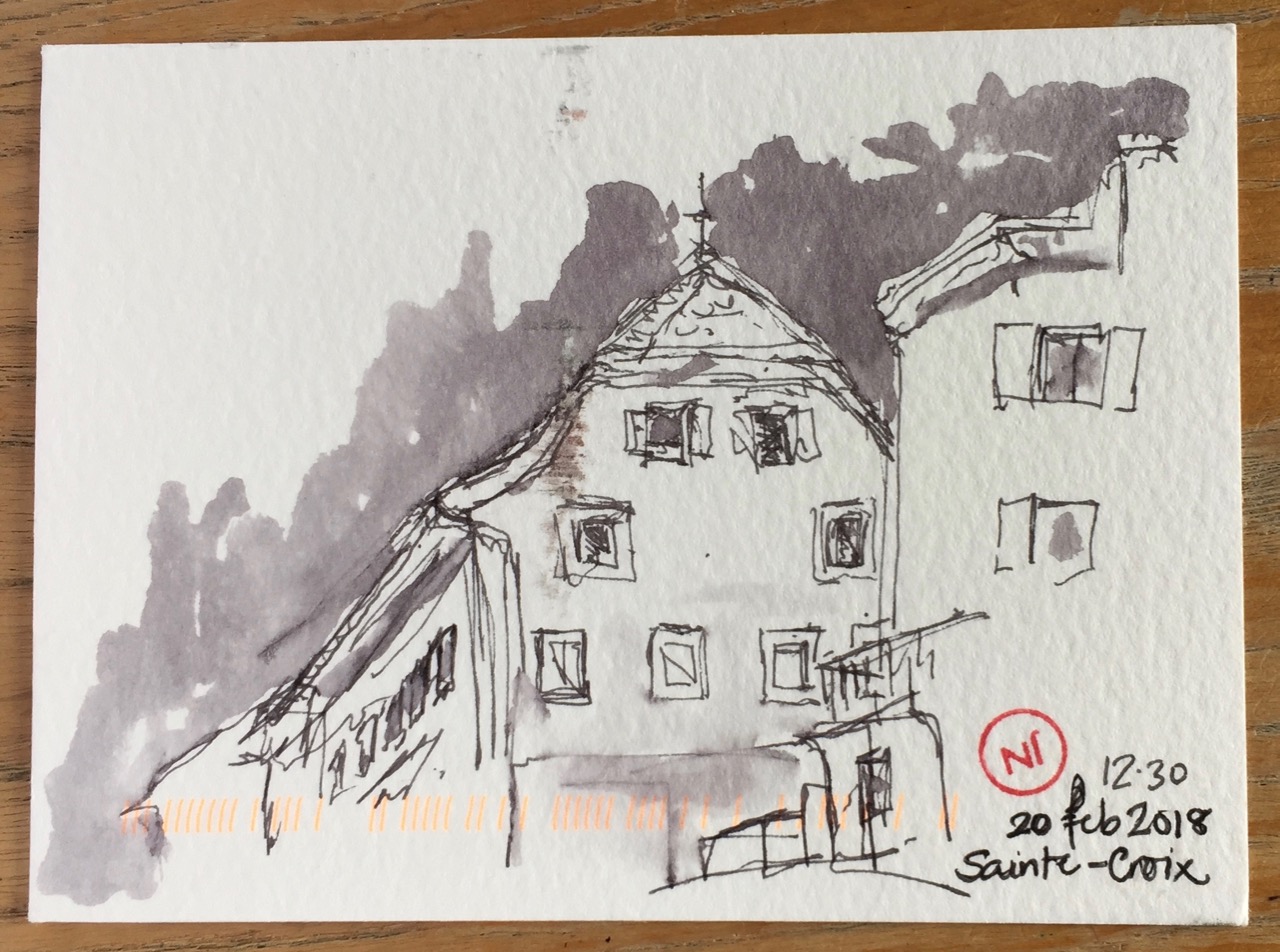 I’m just back from another visit to Sainte-Croix in Vaud, Switzerland. Mostly I was working, but I managed to do a few sketches.