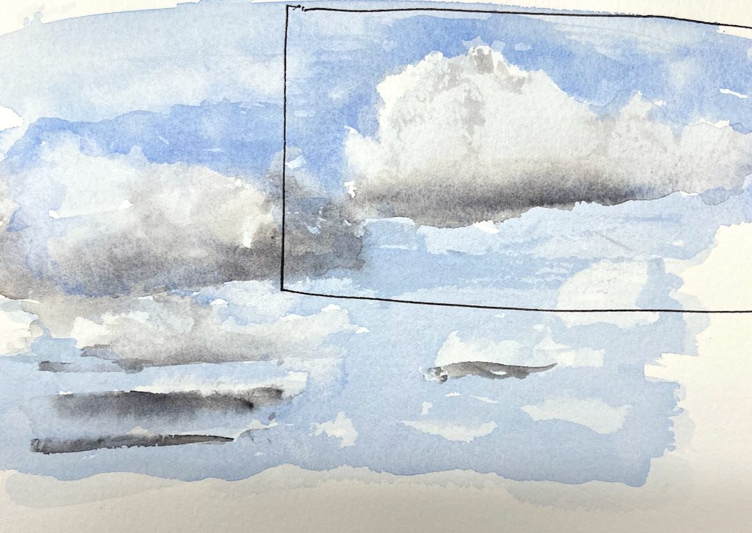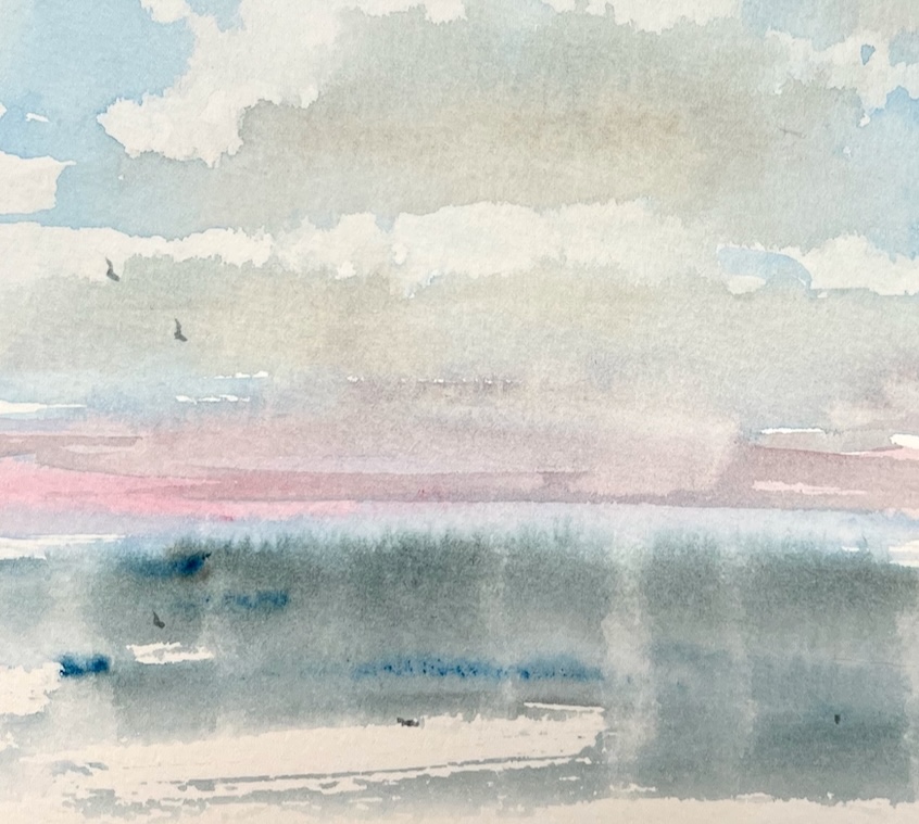 It is also damp. Paint takes a while to dry. So I do several paintings at once: I put the first wash on, and while that dries, I start another picture.