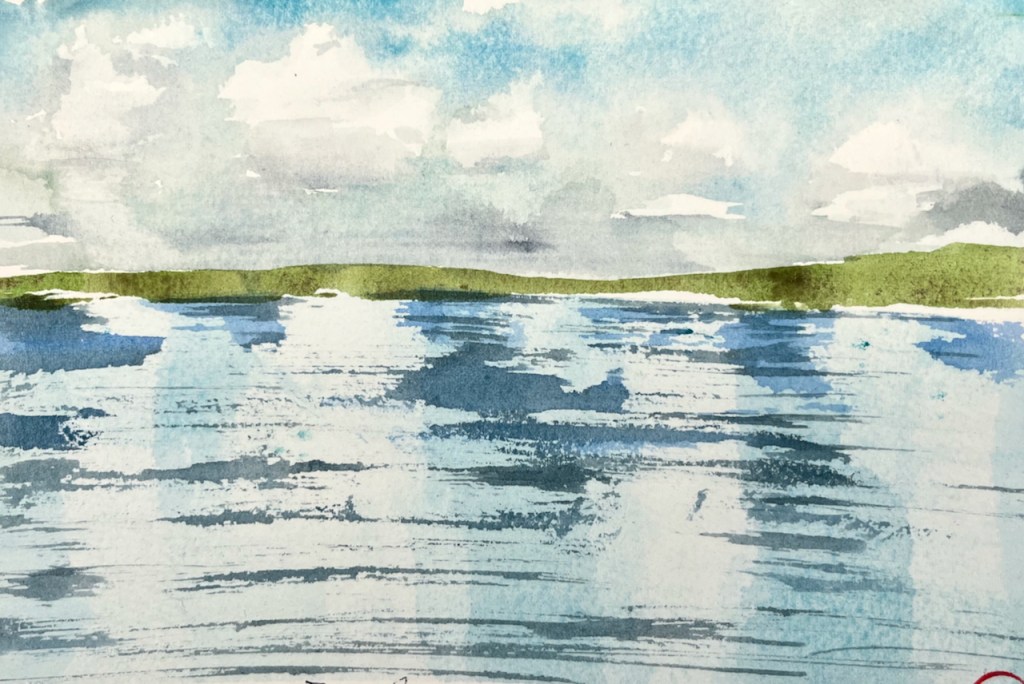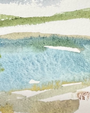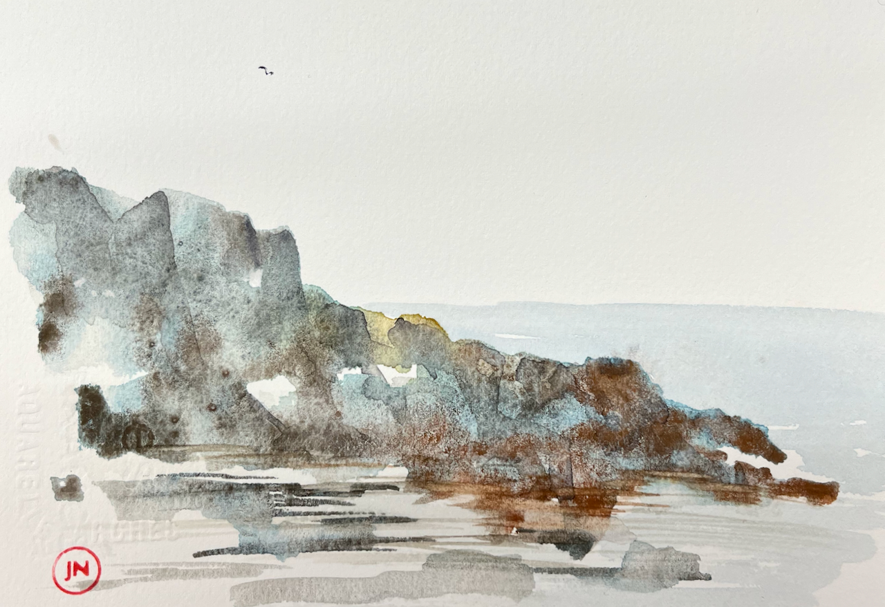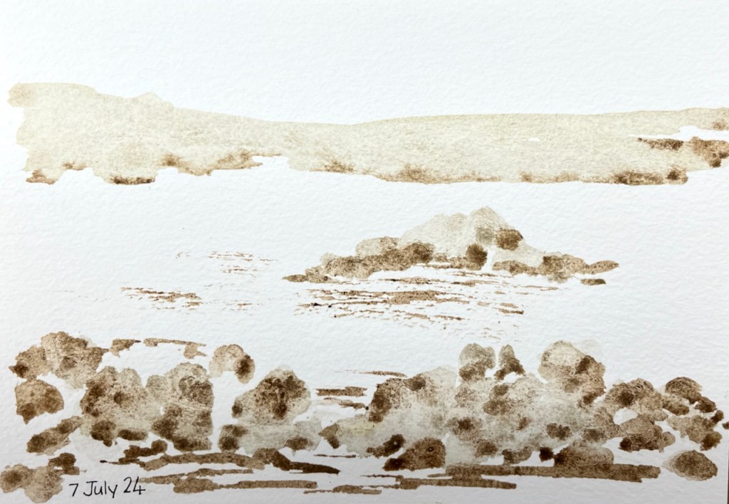 “Promontory”. Painted with home-made watercolours with shop-bought watercolour (blue).