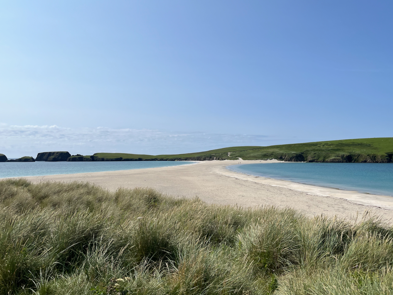 Further south is St Ninians, an island at the end of a long sand tombolo (sand bridge).