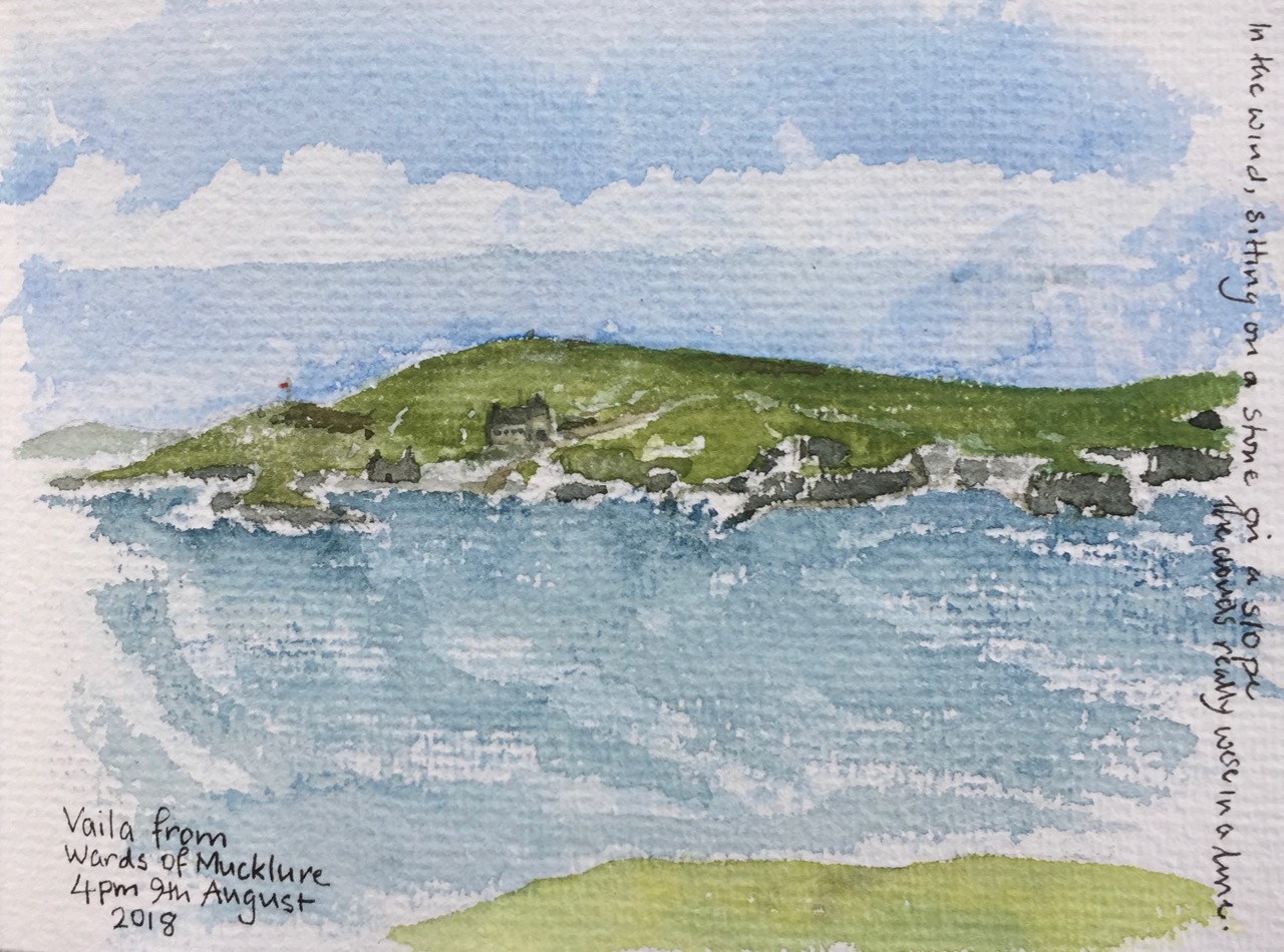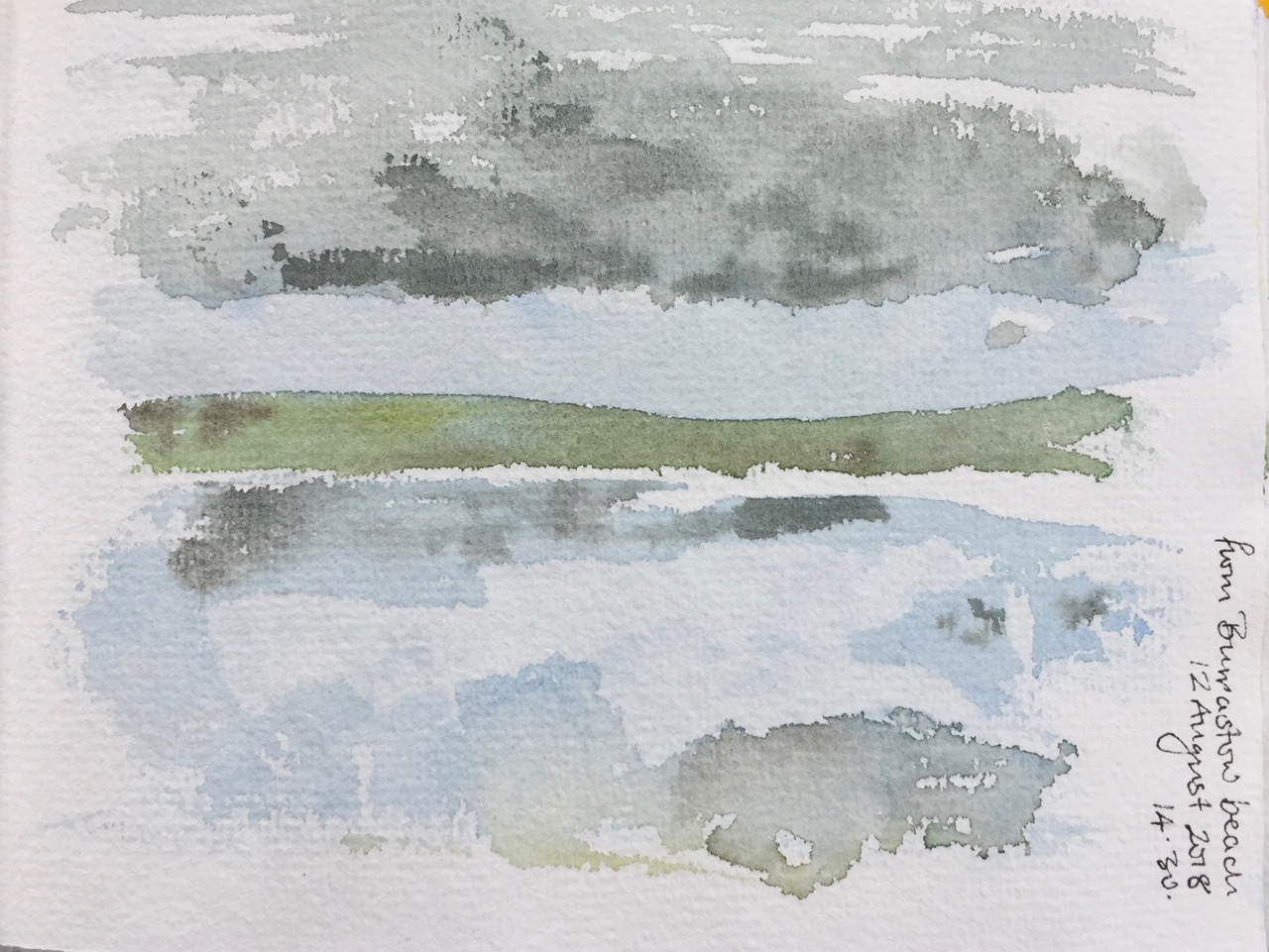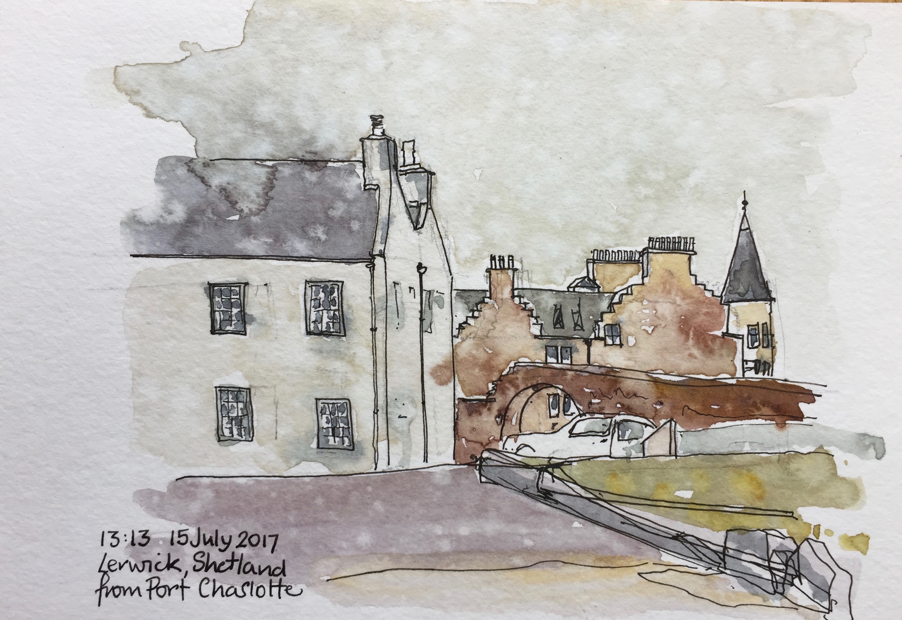 The other sketchbook I used was a Khadi cotton paper, much more absorbent. Below is a picture of the roads of West Mainland. The roads are calligraphic strokes on the landscapes.