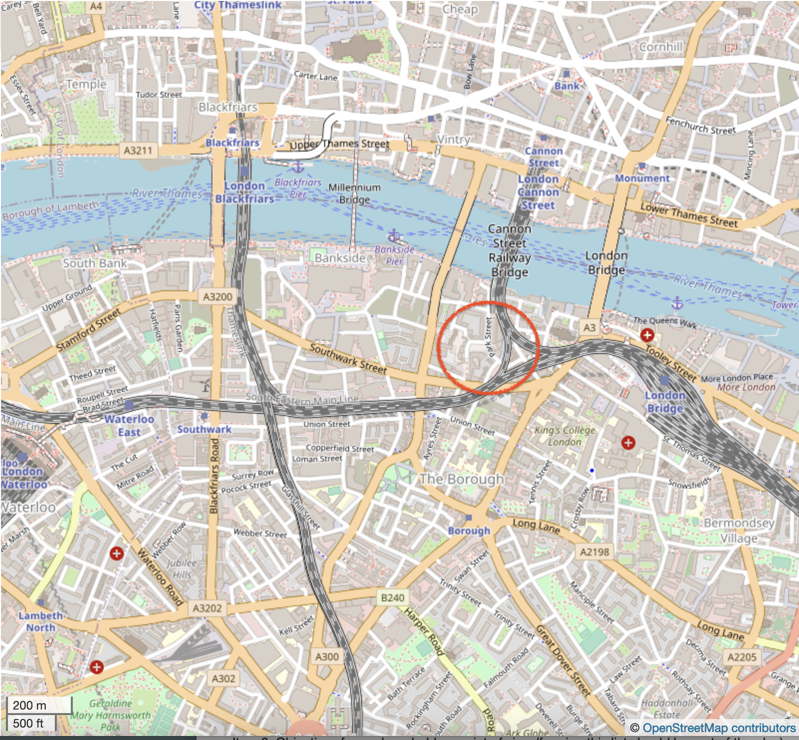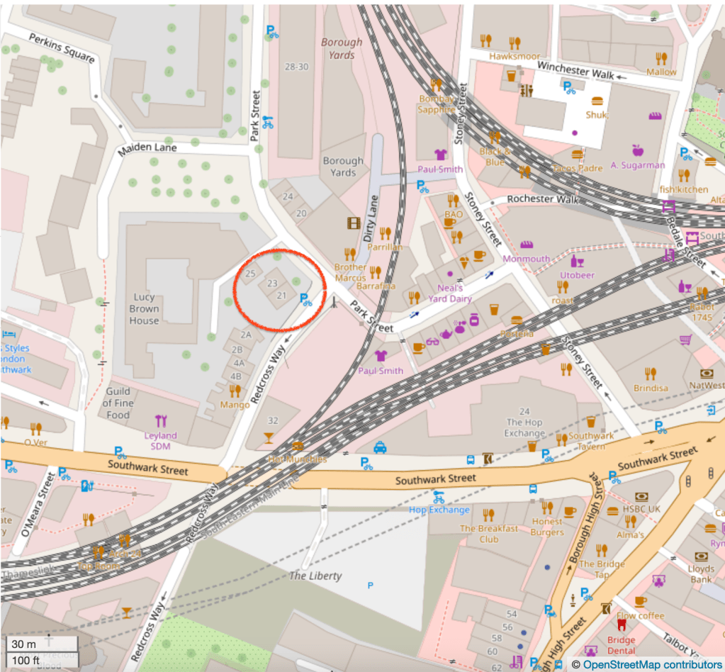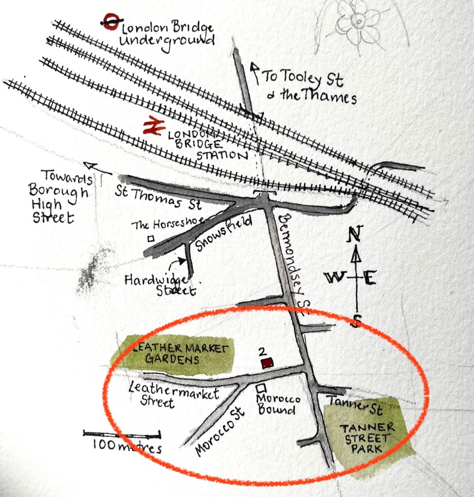 The names of the streets round here indicate the historic industry of the area: tanning and leather making: Leathermarket Street, Tanner Street, Morocco Street.