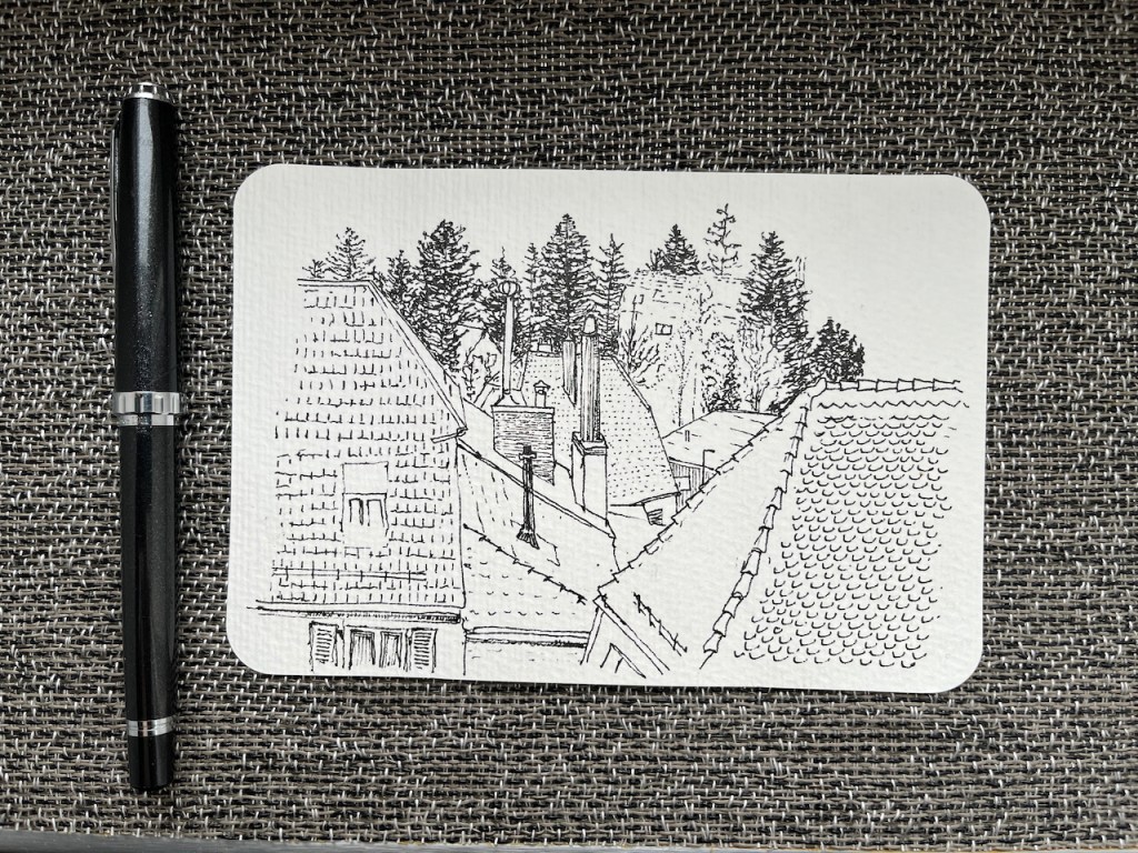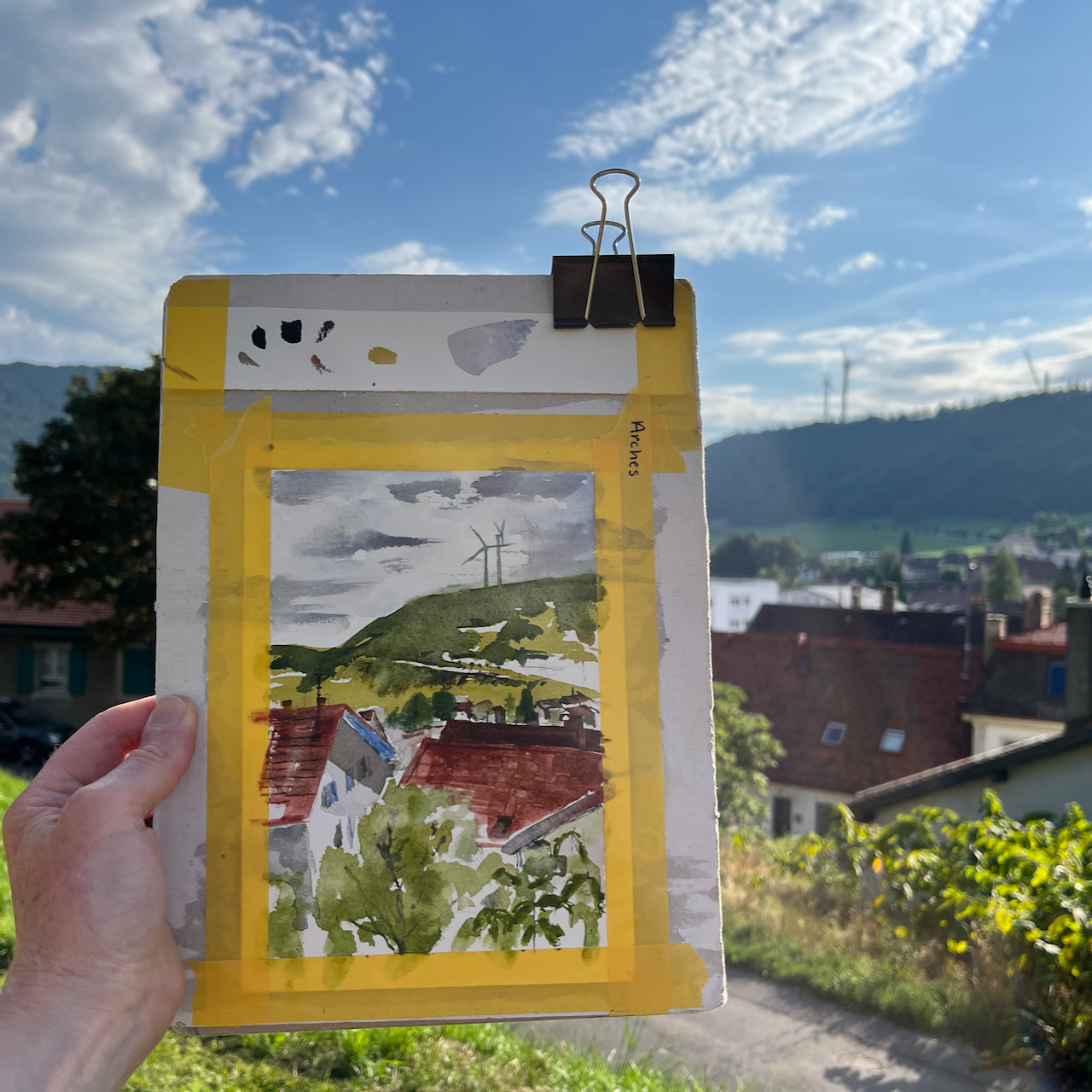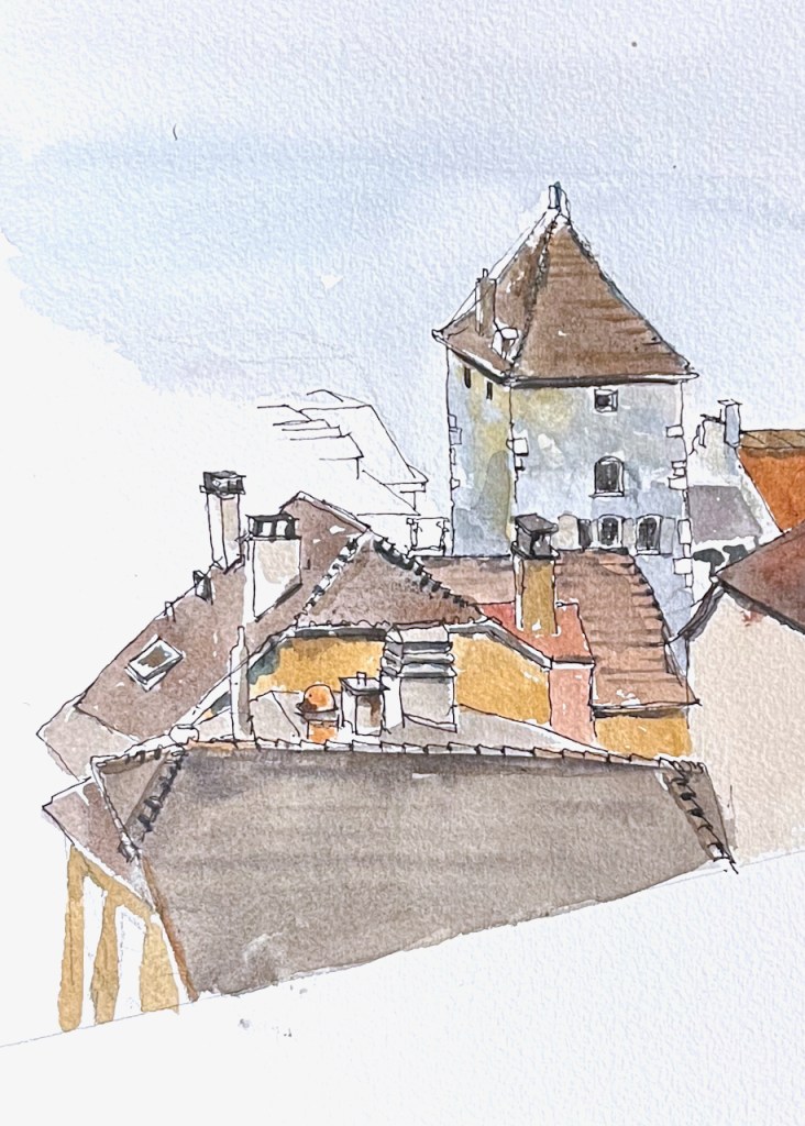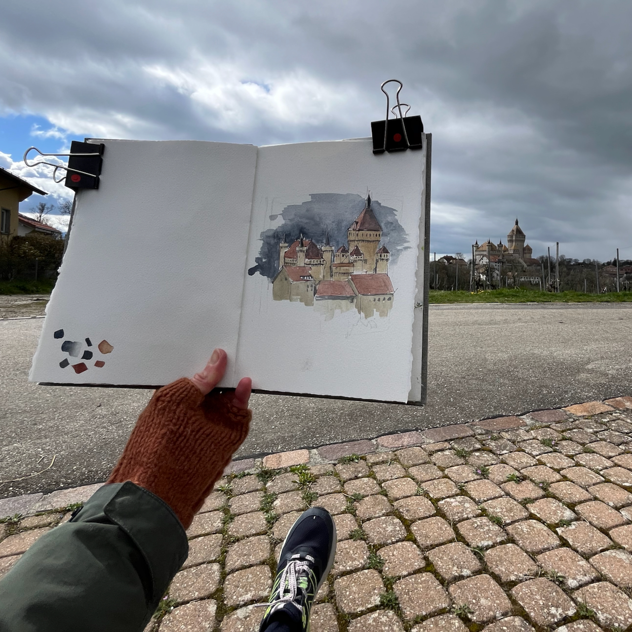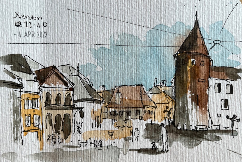 I’ve sketched in Yverdon before. Here is the Temple of Yverdon which is just to the right of the Bazar.