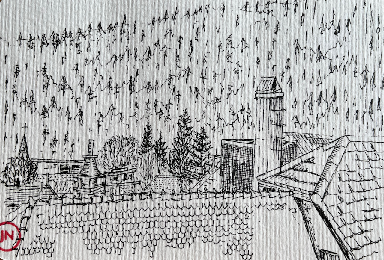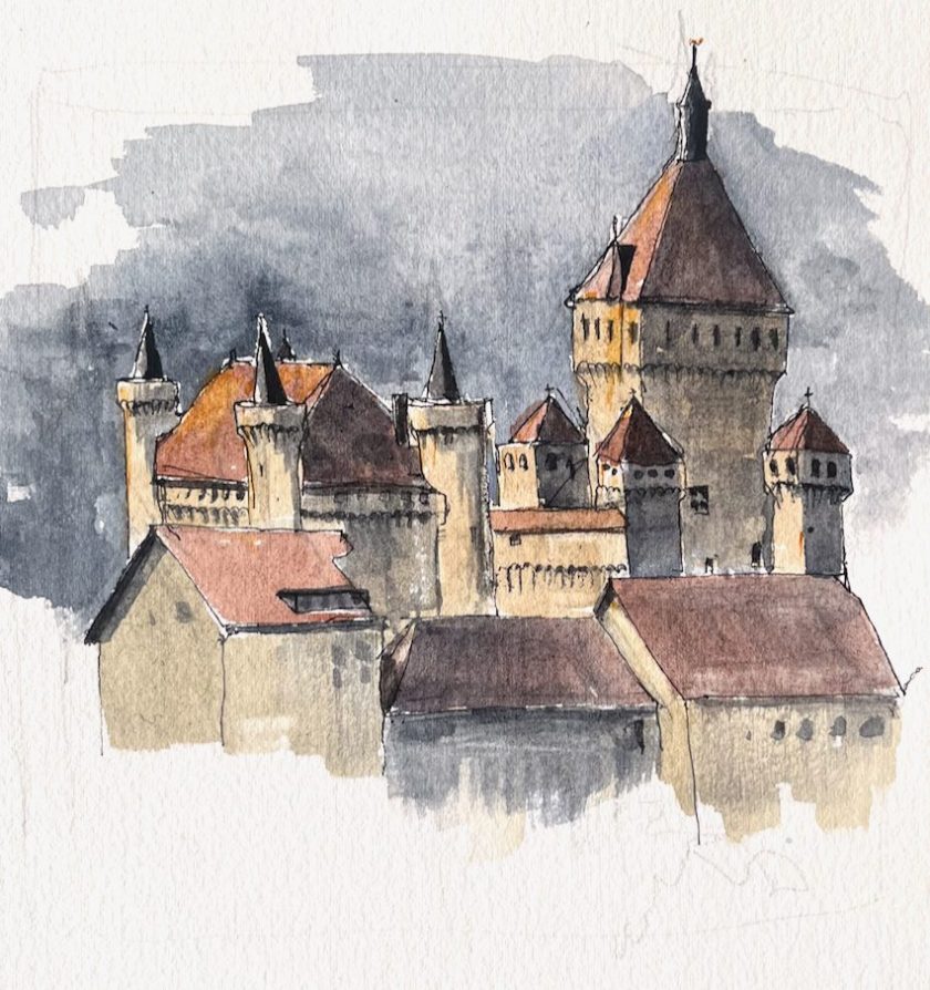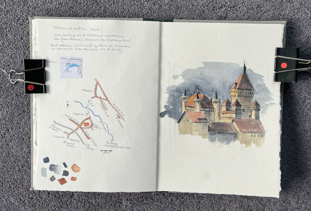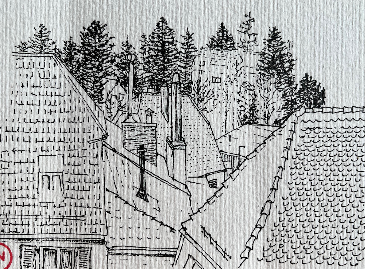 I’ve sketched in Yverdon before. Here is the Temple of Yverdon which is just to the right of the Bazar.