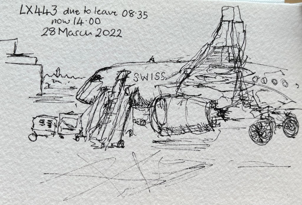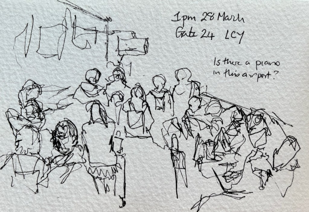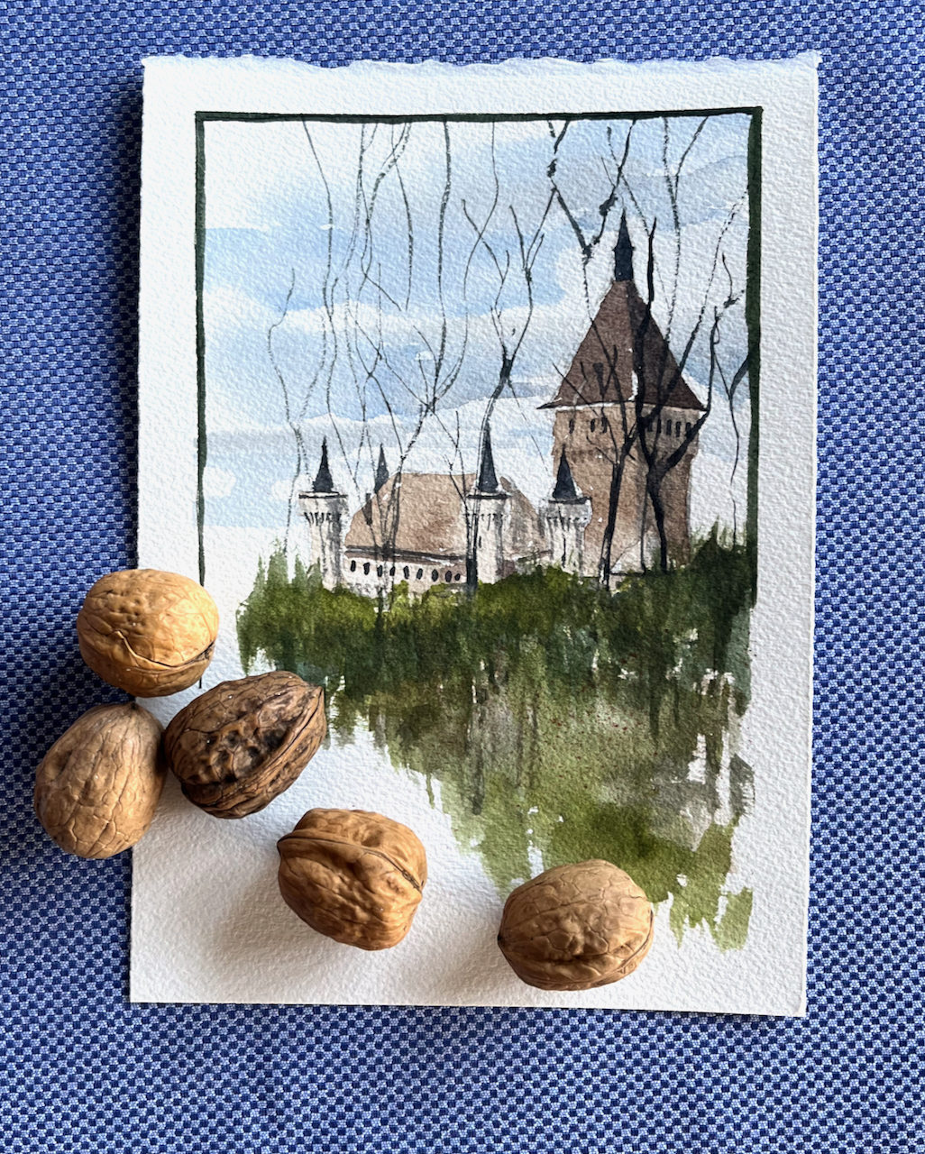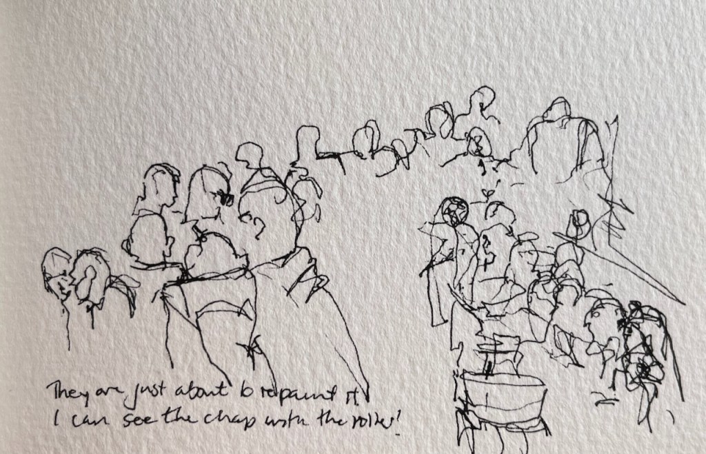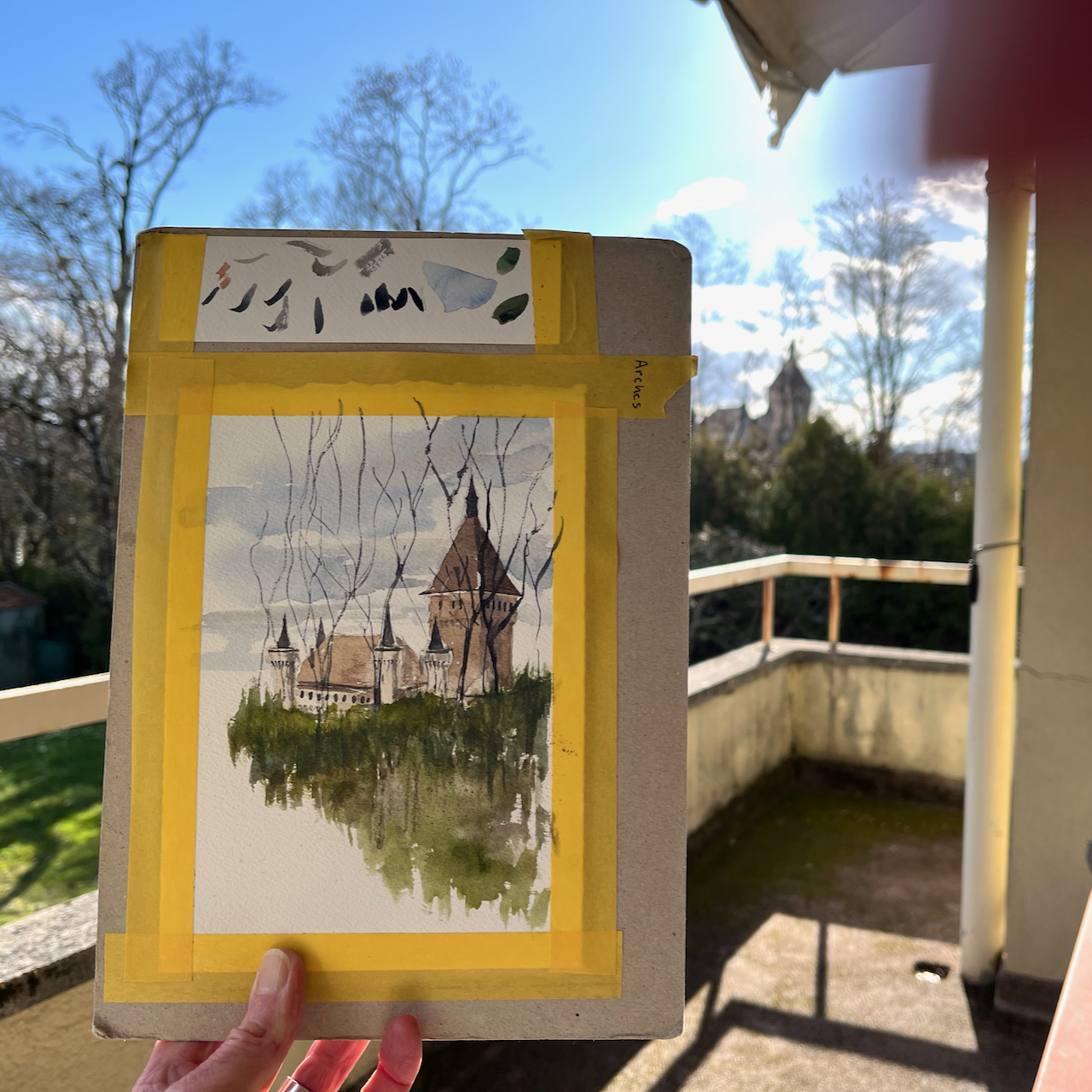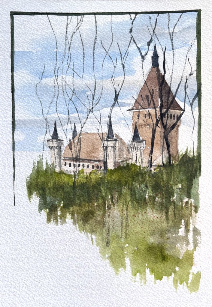 It was very cold. I just managed to complete the pen and ink sitting in the square. Then I finished the colour in my hotel room.
