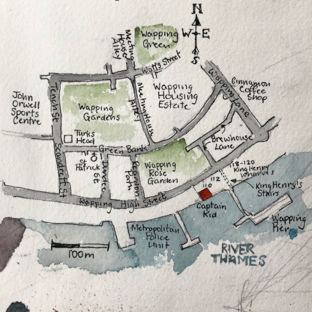 I’ve read that you can walk through the Rotherhithe Tunnel starting from one of the the tunnel entrances and passing under the shaft I’ve drawn. Those who have tried it8, even during the pandemic, do not recommend the experience. The tunnel is highly polluted from the vehicle fumes, and the pavement is narrow. It’s even pretty terrifying to drive through it in a car. Close the windows and the air vents, and stay alert while driving. If you’d like to walk a Thames tunnel, I recommend the Greenwich Foot Tunnel, or the Woolwich Foot tunnel, both of which I’ve walked. They are fun, eerie and have no traffic to pollute the air. You can read about my excursion to the Woolwich Foot Tunnel here.