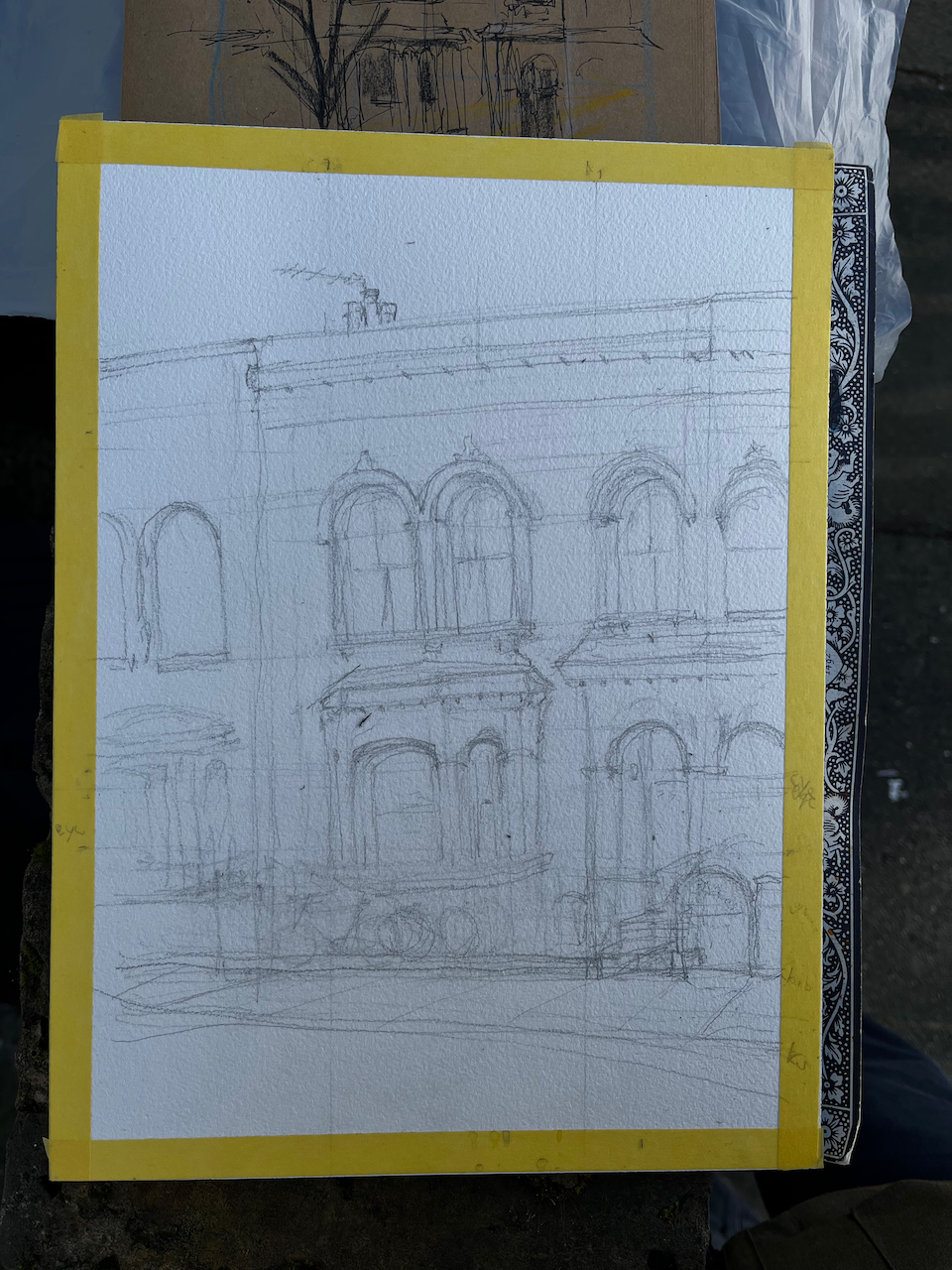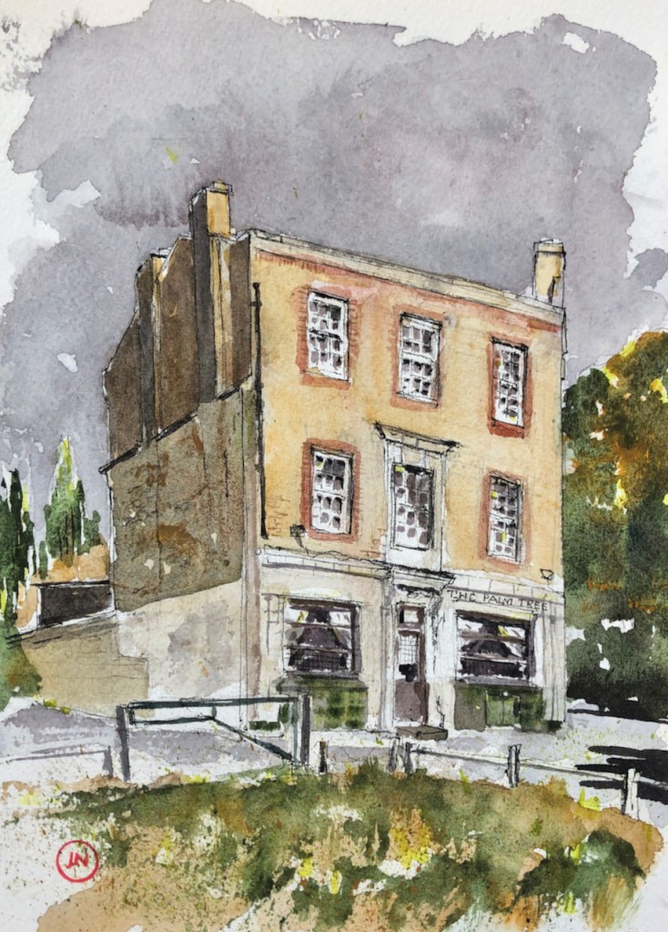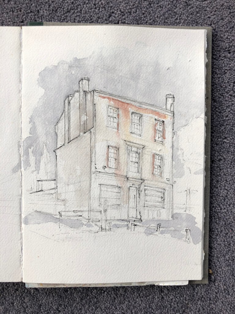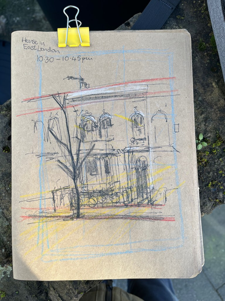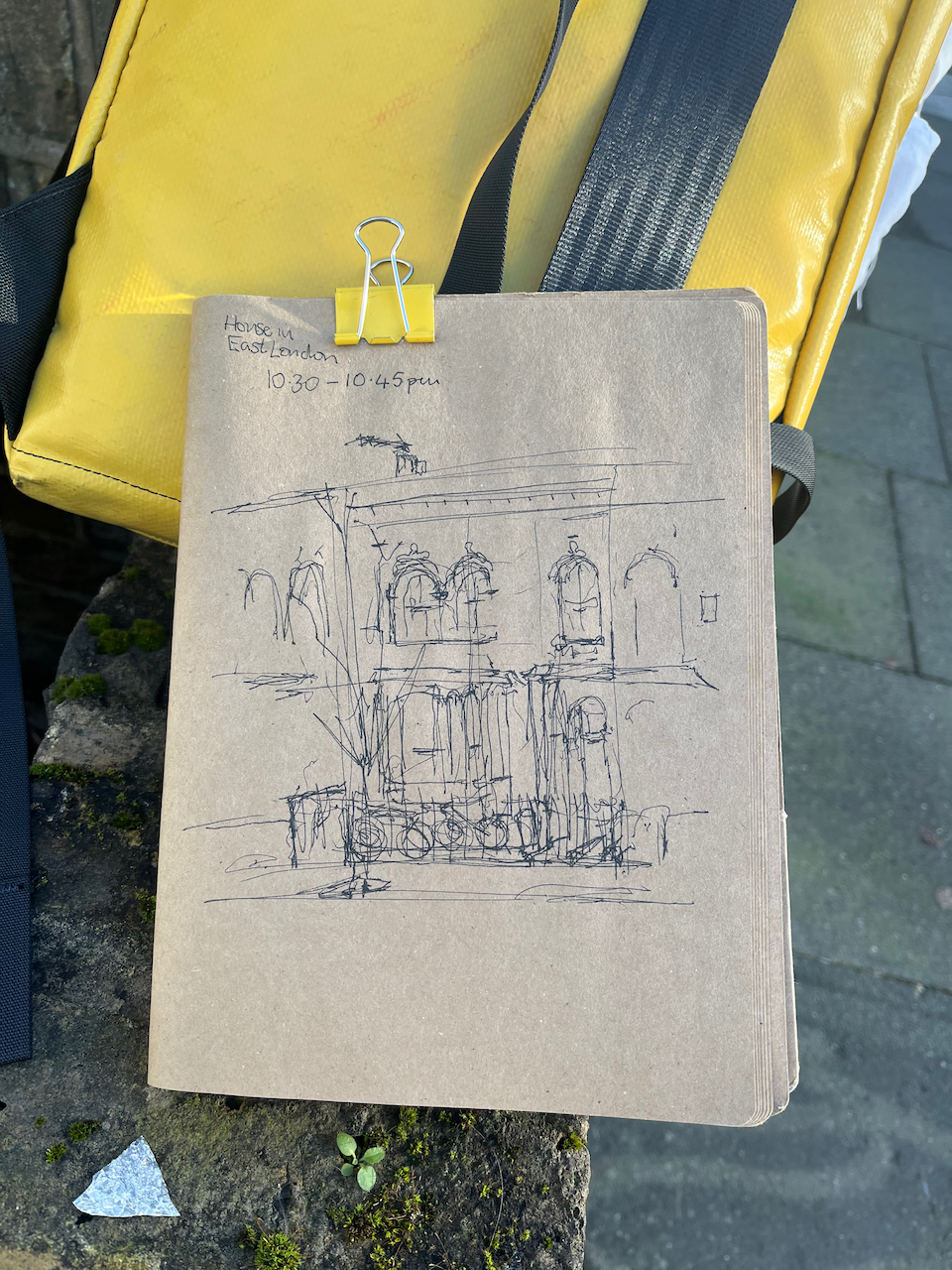 The fences in my drawing are the perimeter of a Thames Tideway tunnel construction site. The Thames Tideway Tunnel carries sewage from central London to Becton Sewage Treatment Works. It runs under the Thames. At various points there is a junction between this main sewer and a local sewerage system. The site at King Edward VII is one such junction.