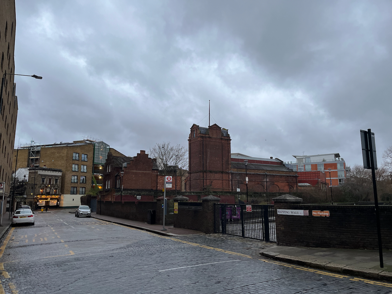 Construction work for the Thames Tideway tunnel surrounds this small round building on the north side of the Thames, near Shadwell.