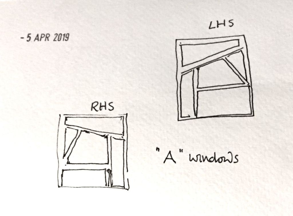 The house in the centre of my picture is 123 Tyers Street. This is much plainer. But it also is intriguing. The lower windows are not directly below the upper windows, but shifted right.
