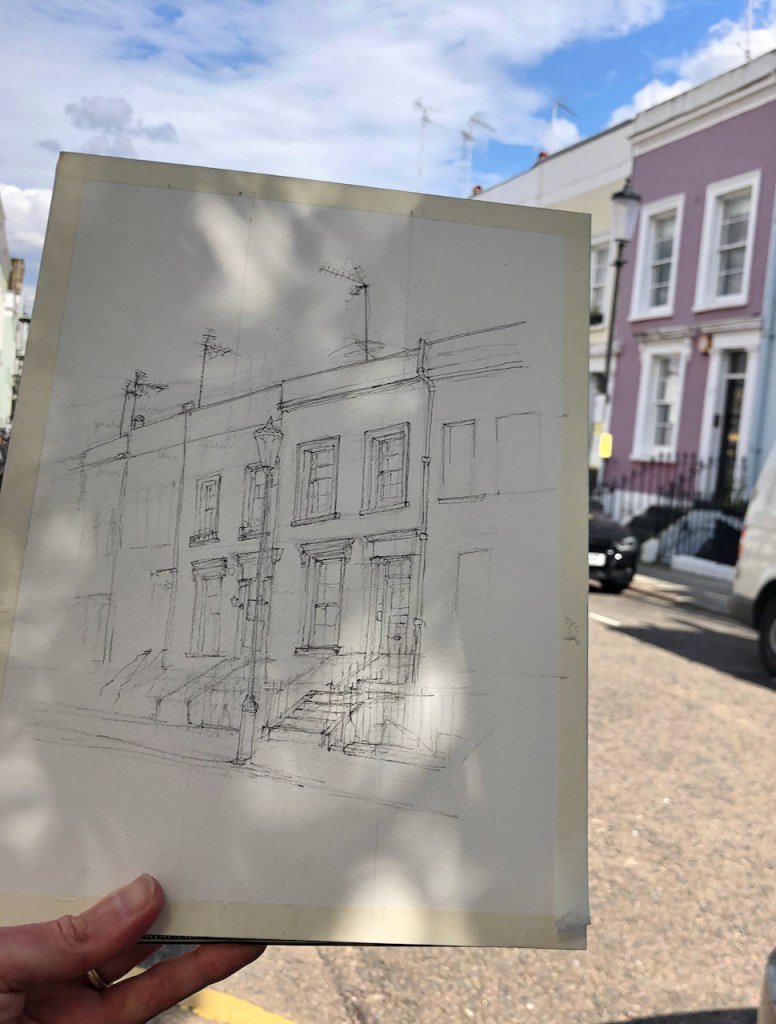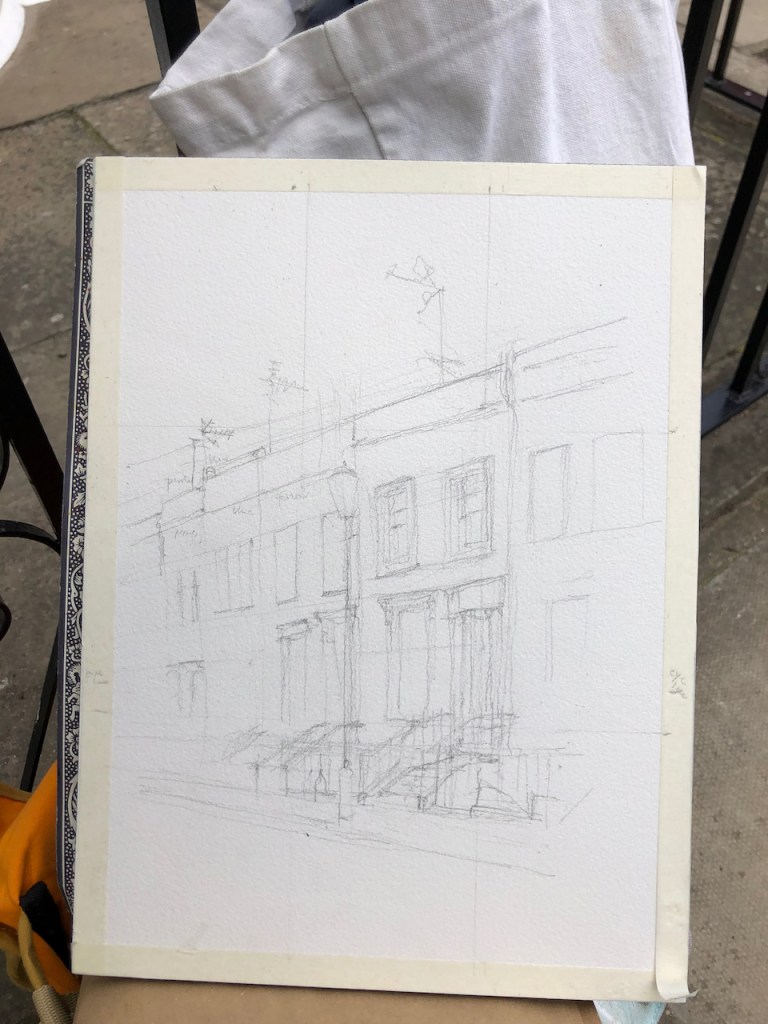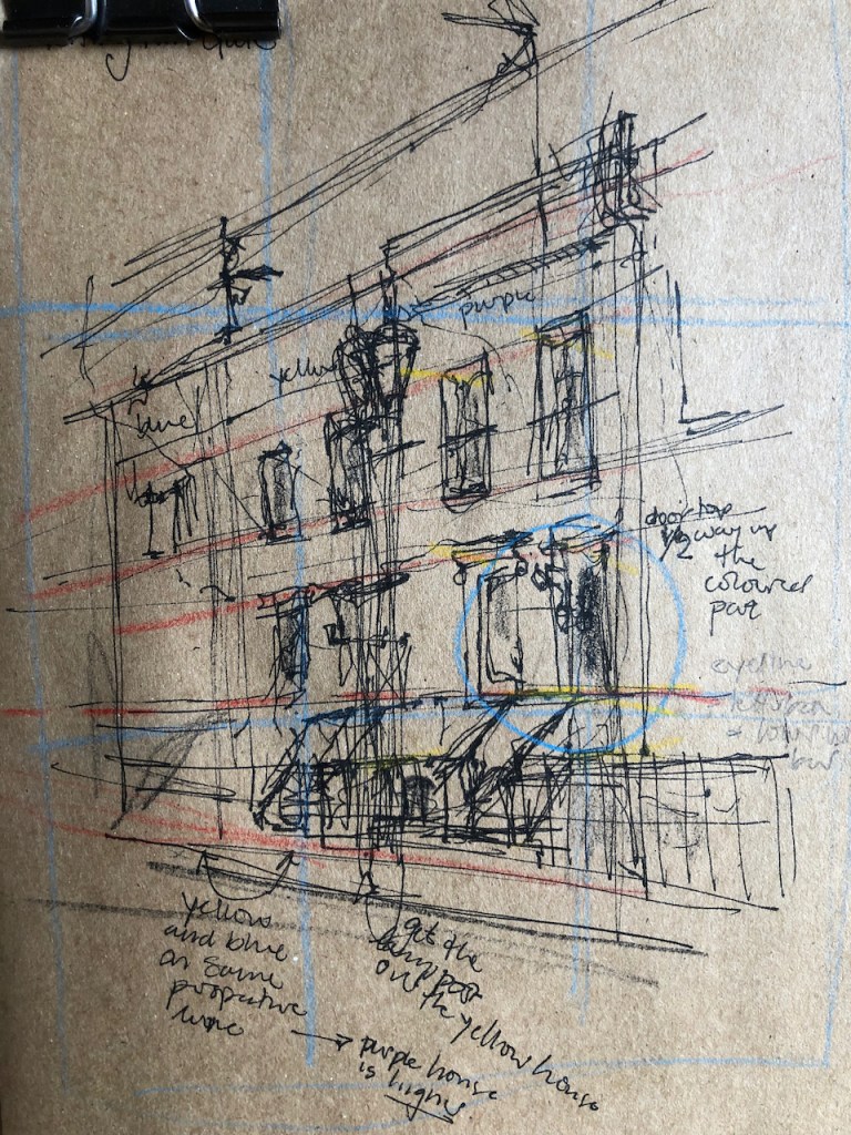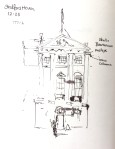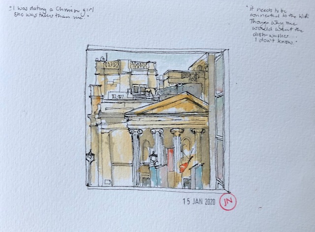 I sketched this church over a lunchtime. At 1pm its bells played its tune, “Oranges and Lemons“, a little haphazardly, but quite distinct.