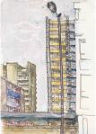 The aim of the exhibition was to show the character and history of the tower blocks visible from where I live. My window looks North over Finsbury, Islington and Camden. I can see 25 blocks, from the 1960s to the 21st century. There were pictures of the Barbican Towers and other towers in The City, including church towers, office blocks and residential towers.
